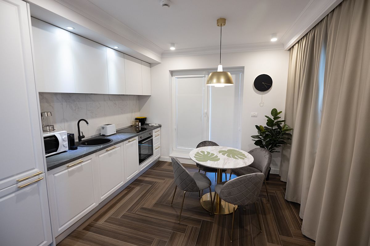 Dormitor, Coltar, Balcon, Bucatarie, Baie, 2 Tv, Aer condiționat, Frigider, Masina de spalat haine, Masina de spalat vase, Vesela și tacâmuri, Cuptor cu microunde, Cuptor Electric, Plita Electrica, Prajitor de paine, Ceai și Cafea, WIFI, Fier de calcat, Masa de calcat, Prosoape, Uscător de par